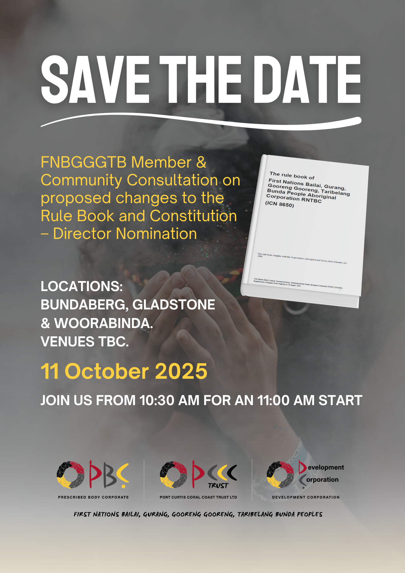 We wish to advise our FNBGGGTB community that the Member and Community Consultation scheduled for Saturday, 11 October 2025 has been postponed until further notice due to sorry business.